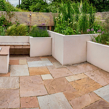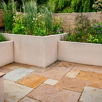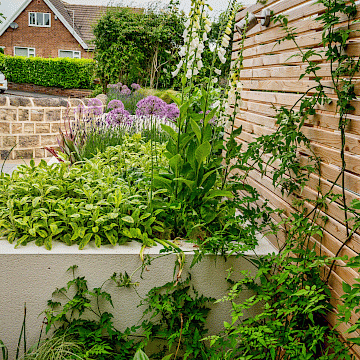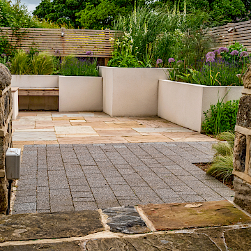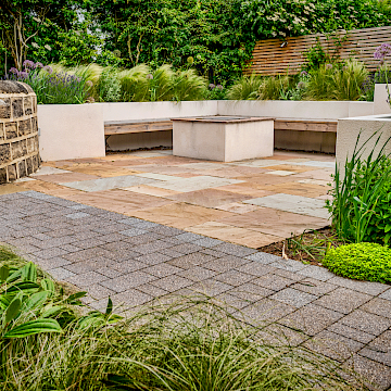 This project was completed in May 2017, and it was great to see it a year down the line with the plants in full bloom. This garden was designed by award-winning designer Tracy Foster. The rendered planters create a real showpiece and provide the perfect backdrop for evenings sat around the fire pit.