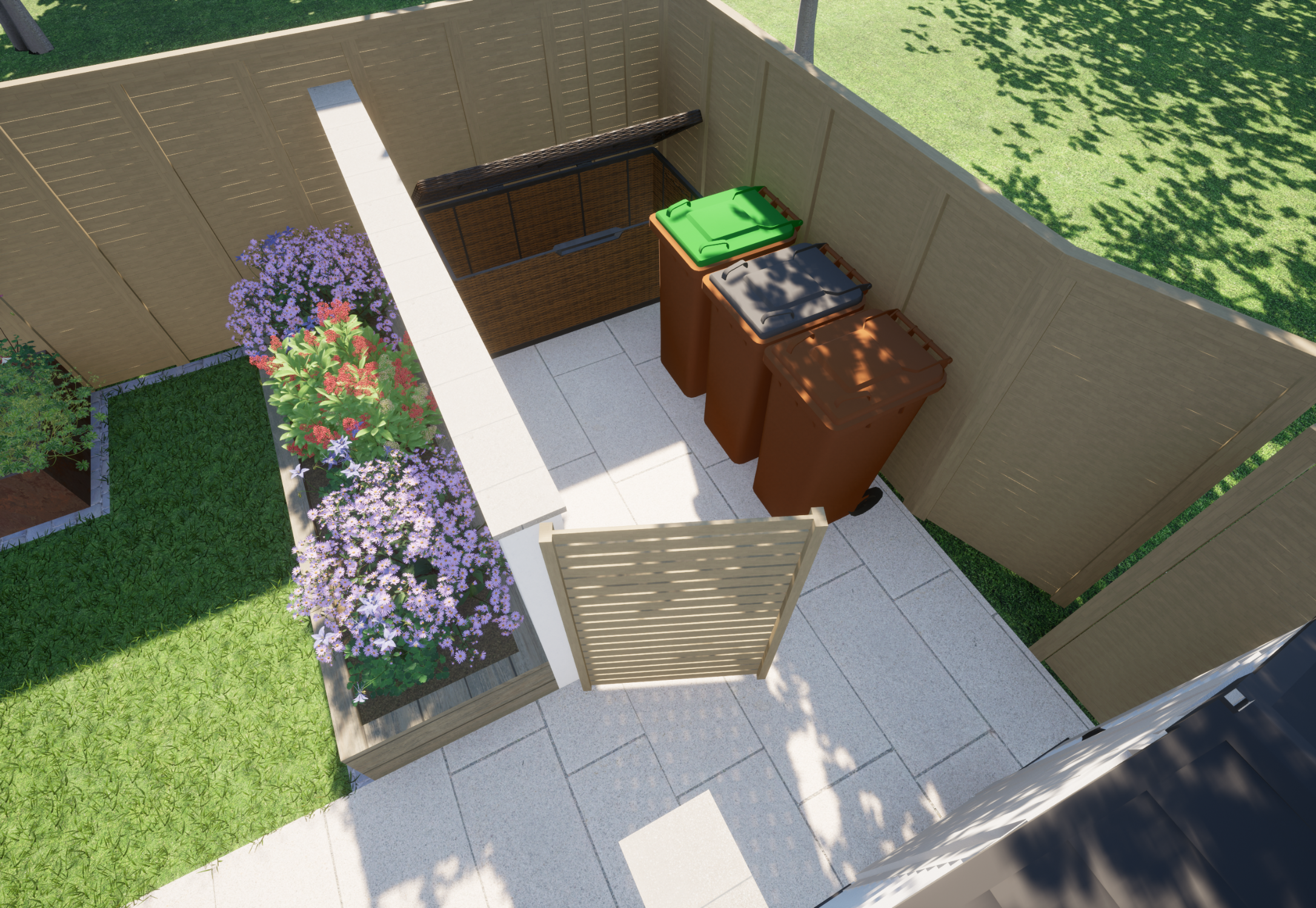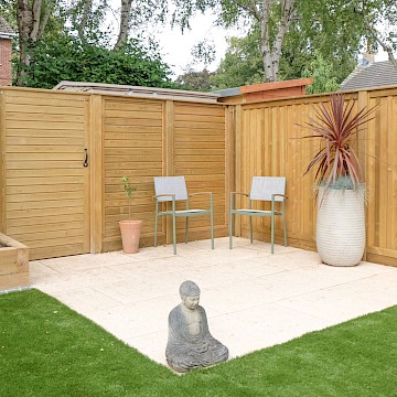 To define the space, we installed Jacksons Fencing, providing a strong, attractive boundary that complements the overall design. We also separated the rear portion of the garden to create a discreet storage area with space for a small shed, ensuring it remained hidden from view and did not compromise the garden’s aesthetics.